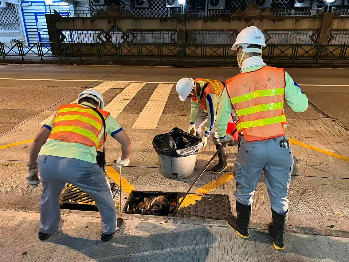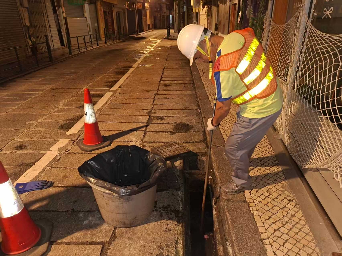 • 市政署持续派员,在安全情况下于在本澳各区清理渠网及集水井,避免杂物垃圾阻塞渠口影响排水。