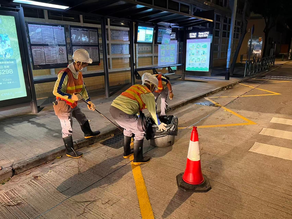 • 市政署持续派员,在安全情况下于在本澳各区清理渠网及集水井,避免杂物垃圾阻塞渠口影响排水(3)