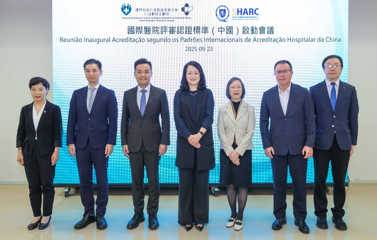 罗奕龙局长在会议上致辞时表示,医院认证是提升医疗质量和保障病人安全的重要手段,深圳市卫健医院评审评价研究中心制定的《国际医院评审认证标准(中国)》已获国际医疗质量协会认证,成为国家首个获国际认证的医院评审标准。今年初,在国务院港澳事务办公室、中央人民政府驻澳门特别行政区联络办公室和国家卫生健康委员会的指导下,在社会文化司的大力支持下,特区政府积极推进认证工作,卫生局仁伯爵综合医院率先开展筹备,目标是争取在2026年内顺利通过认证,而协和澳门医学中心及镜湖医院亦将启动此认证程序。他指出,参与认证具三方面意义:一是依据国家制定的国际标准提升本澳居民就医的质量与安全;二是促进本澳与大湾区医疗机构同质化发展,推动本澳进一步融入国家发展大局;三是凭藉本澳“一国两制”优势及与葡语系国家的紧密联系,助力国家医院评审认证标准不断走向世界,拓展医疗领域国际化工作。