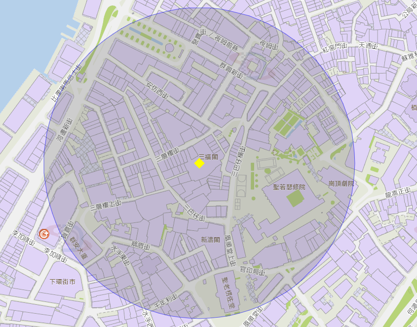 风顺堂亚坚奴前地15号三福阁附近风险区域200米半径范围
