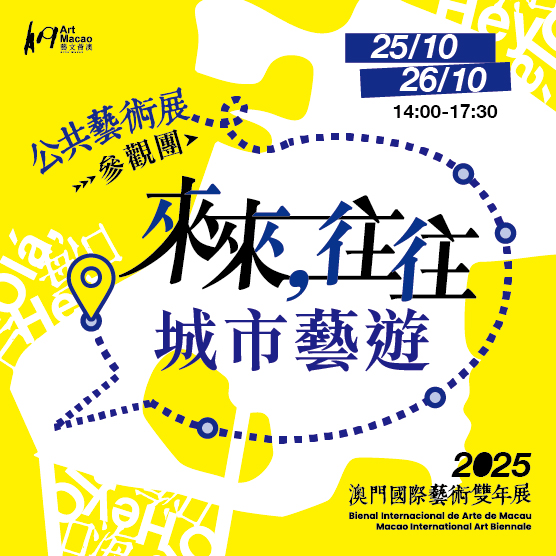 延伸活动“来来往往‧城市艺游”将于10月25日及26日下午2时至5时30分举行,活动以广东话进行,由专人带领参加者探索以上4件/组公共艺术展作品。活动对象为13岁或以上人士,名额12人,费用全免。有兴趣人士可于10月16日上午10时起,透过一户通“活动报名”(activity.mo.gov.mo/activity-h5/activity-list-web)登记,倘报名人数超出名额将以抽签形式录取,获录取者将收到短讯通知。
