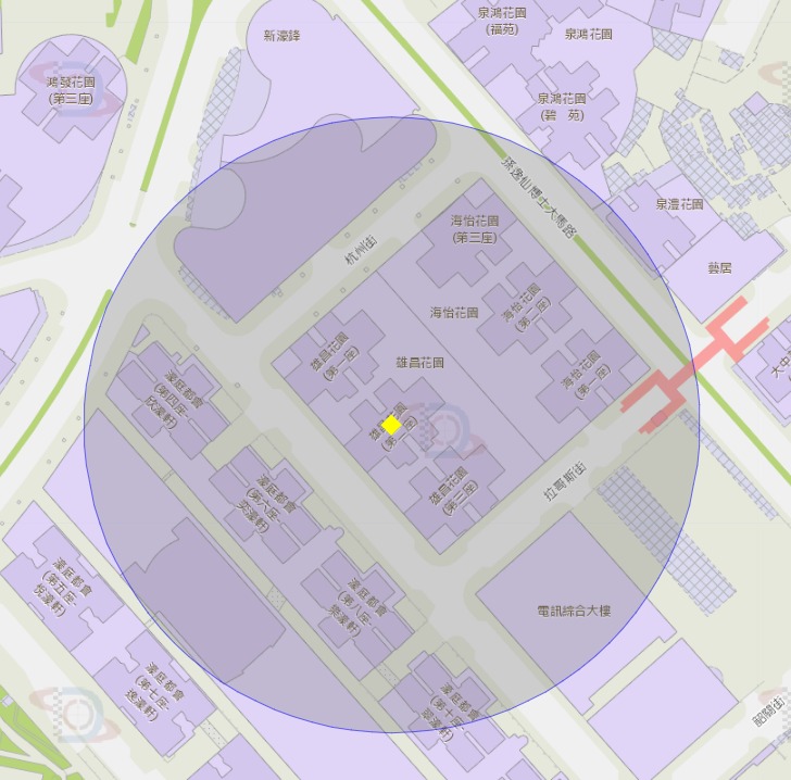氹仔雄昌花园第二座附近风险区域100米半径范围