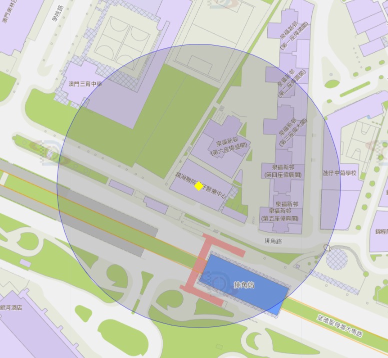 镜湖医院氹仔医疗中心附近风险区域100米半径范围