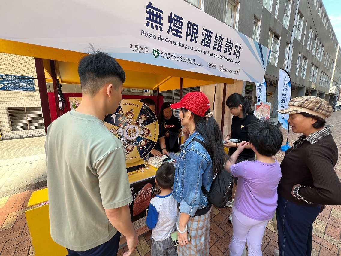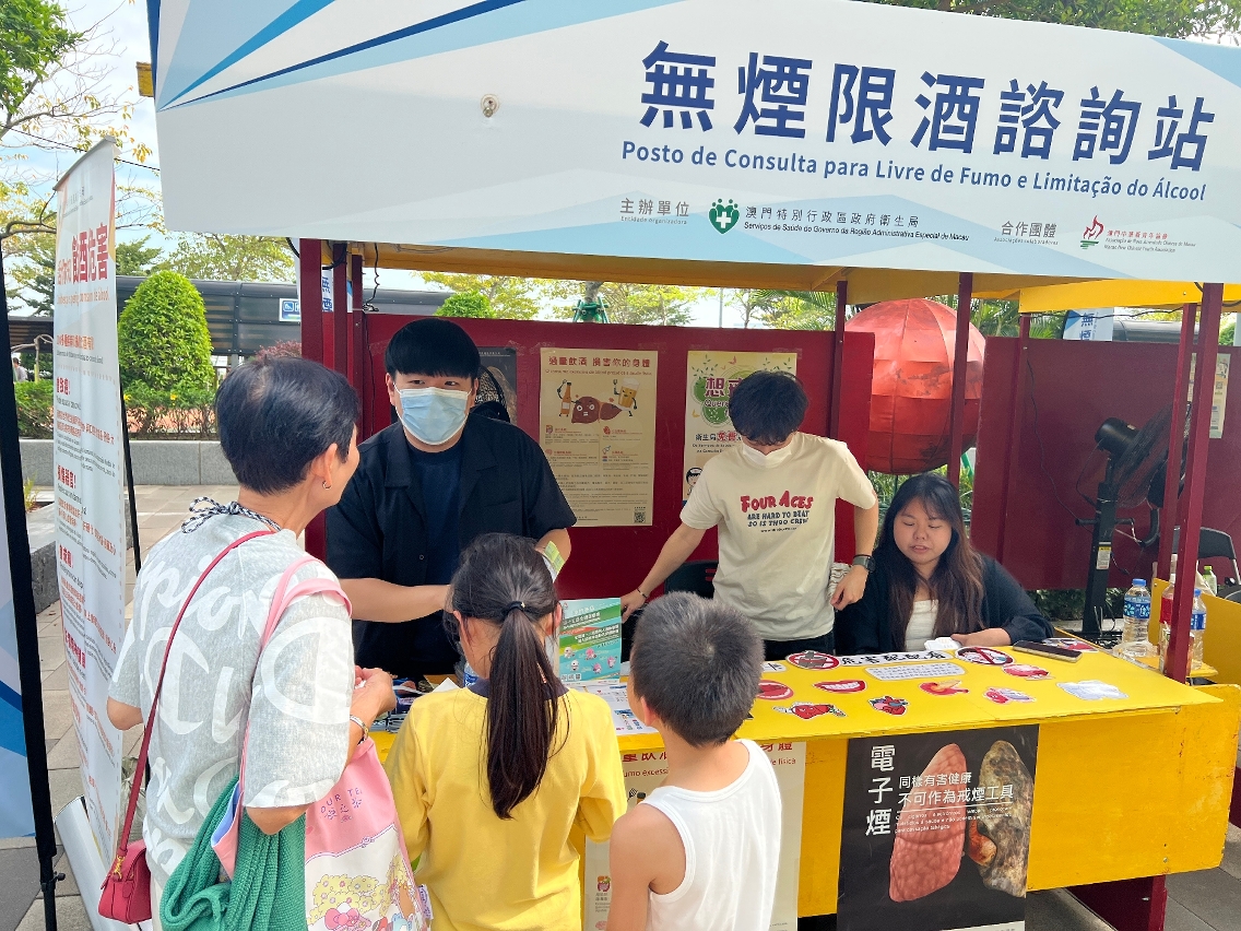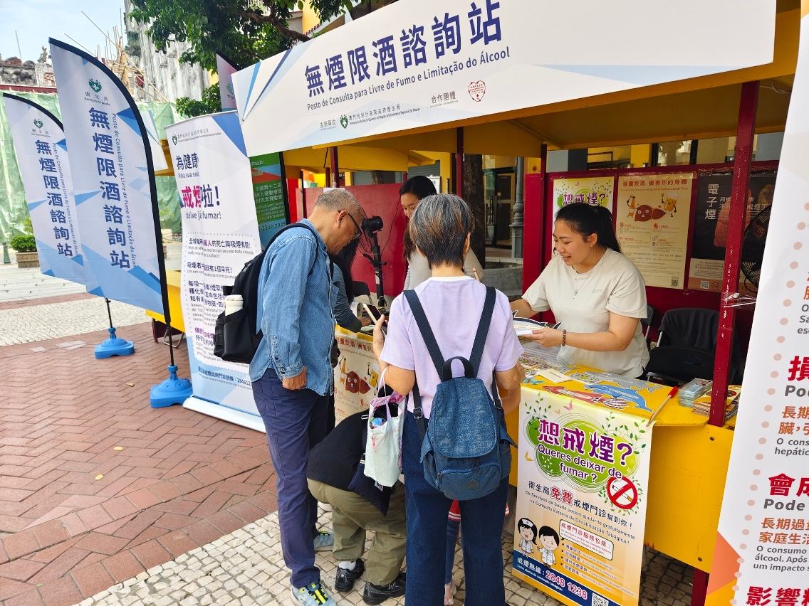 活动于澳门、氹仔及路环区共10个地点同步开展,透过设置咨询摊位、互动游戏及健康讲解,向居民深入介绍烟酒对健康的危害,并普及《控烟法》与《控酒法》的相关规定。现场由合办社团的医护人员提供专业的戒烟咨询服务,不少居民即场透过“一户通”手机应用程式,预约卫生局的戒烟门诊。