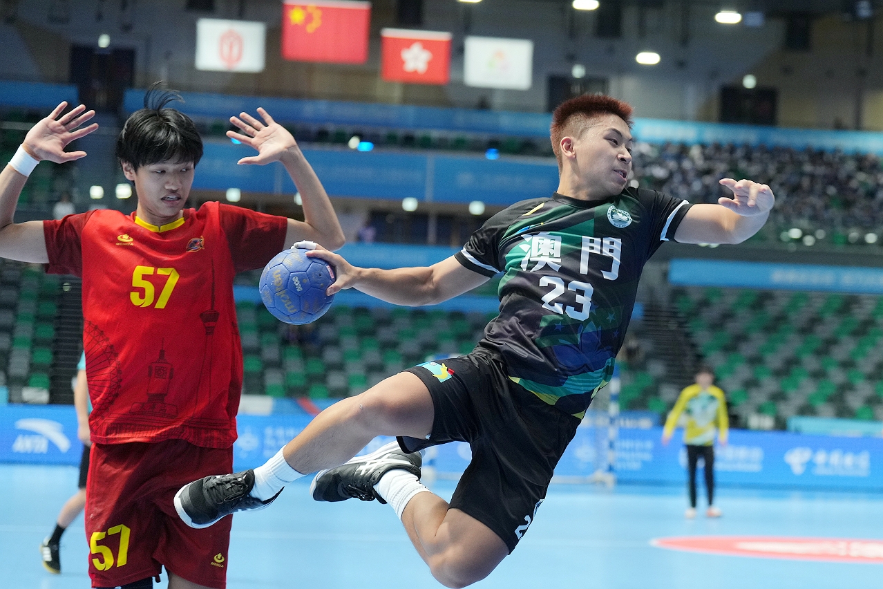 在香港赛区的手球男子组进行名次赛,澳门以20比34负天津,最终位列第10名,并已完成本届所有赛事。