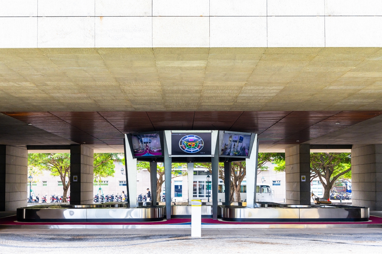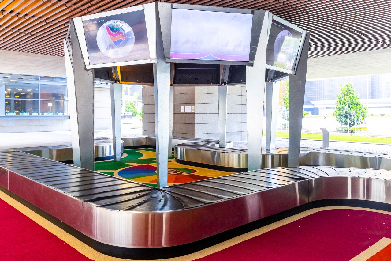 中国知名当代艺术家尹秀珍以极具个人风格的装置艺术与参与式创作闻名,是次艺术家呼应本届双年展主题“嗨,你干甚么来了?”,创作影像互动参与式装置《不是终点站》。作品创设以“静止行李传送带闭环”为核心的公众互动社交平台,周围铺设塑胶地毯,适合公众开展活动。平台上方悬挂屏幕,即时播放现场画面与预录生活场景,与现场公众共同编织一场不断变化的生活剧场。艺术家通过将“终点站”与“非终点”的概念并置,探讨生命的流动性与不确定性,邀请观众反思动荡世界中的人生意义,并强调个体与集体在流动中的独特性与多样性。