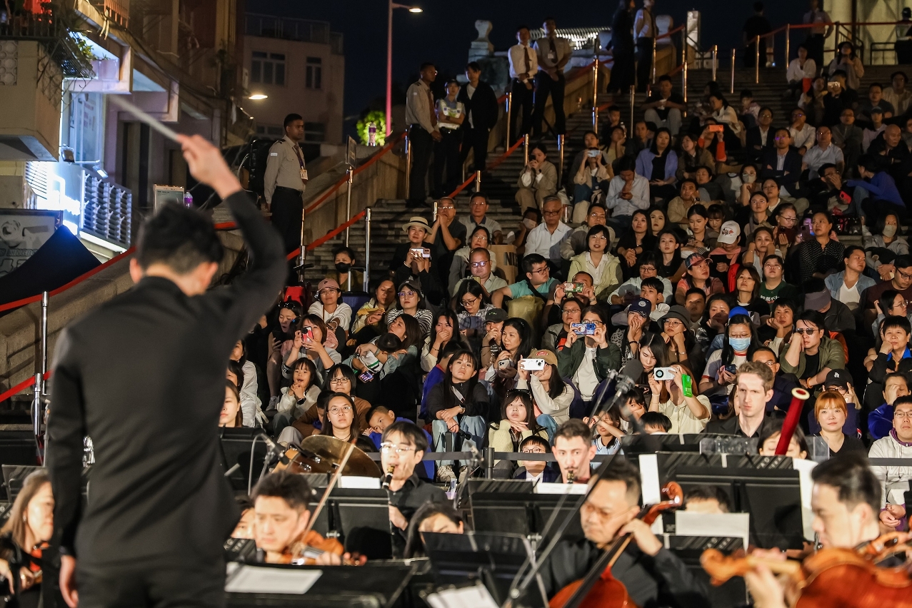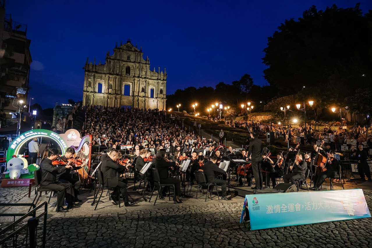 为呼应粤港澳三地联合举办的十五运会及残特奥会,促进文体协同发展,文化局联同澳门乐团有限公司于世遗景点大三巴牌坊举办系列音乐会,以丰富多彩的表演及互动将热情与活力带入社区。澳门乐团今晚(12日)上演《乐悠世遗》音乐会,吸引众多市民与旅客驻足欣赏,现场气氛热烈。