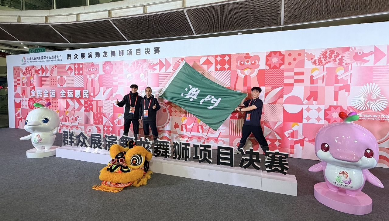 第十五届全国运动会群众展演舞龙舞狮项目决赛于11月11日至13日在佛山岭南明珠体育馆举行,澳门理工大学护理学学士课程学生黄泽荣,以及体育教育学士课程学生余乐琪代表澳门出战赛事,凭着与队员极佳的默契配合和出色的表现,分别于南狮障碍及舞龙障碍项目勇夺二等奖和三等奖,为澳门增光添彩。