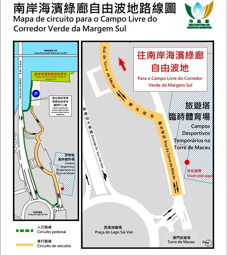 市政署按计划分三区有序推进南岸海滨绿廊二期工程,重点为球场功能的一区于周一(11月17日)上午七时对外开放。市民可驾车停泊于一区的临时停车场,或经孙逸仙大马路临时行人道进出。