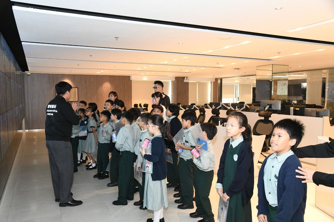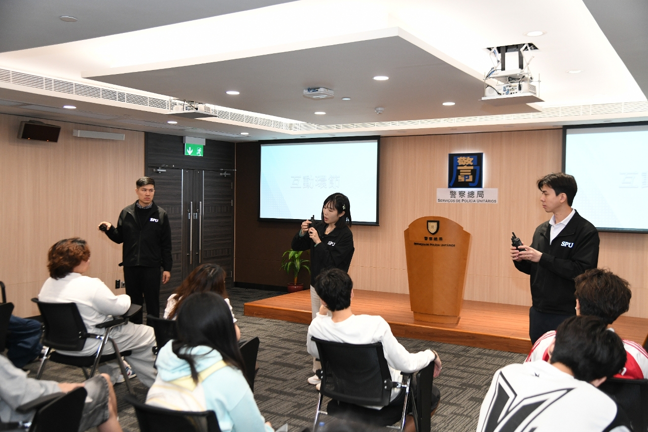 此外,透过互动环节,教导学生们使用警用对讲机进行模拟汇报,从中掌握沟通技巧及提升准确描述事件资料的能力,学生们反应踊跃,气氛热烈。随后,带领学生参观民防行动中心的各项设施,让他们能够亲身体验民防工作的日常情况,加深认识警察总局的民防职能。