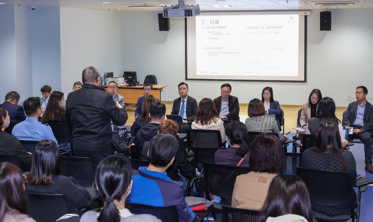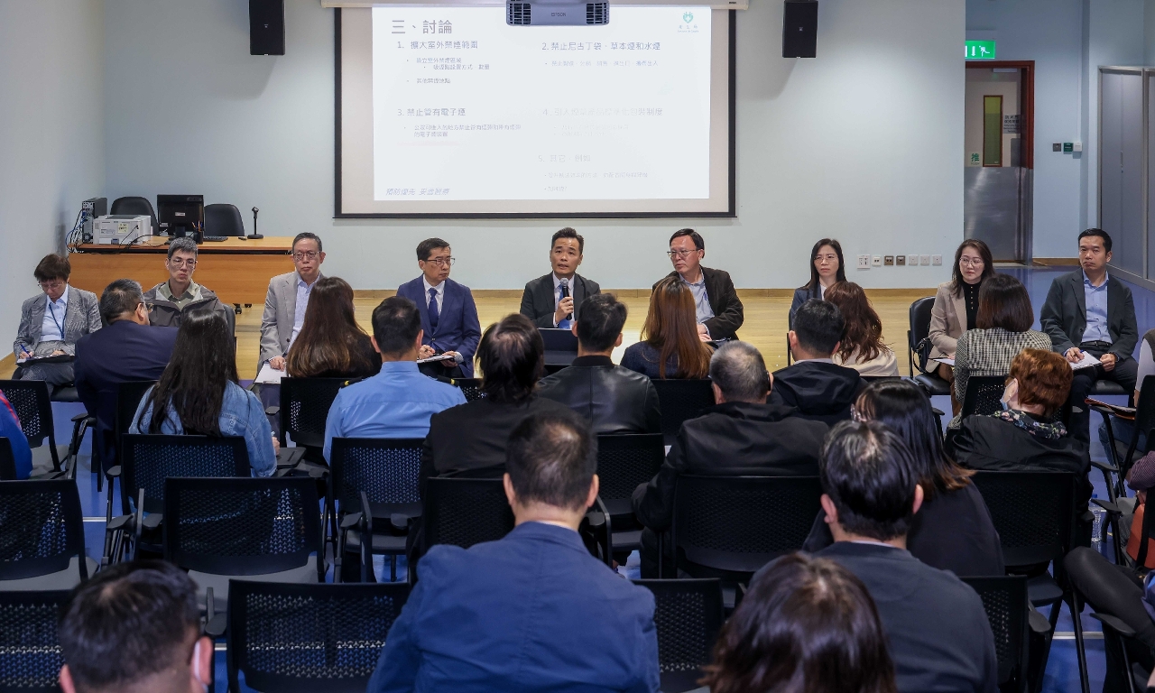 随后,卫生局代表就第5/2011号法律《预防及控制吸烟制度》修订方向进行汇报,内容包括扩大室外禁烟范围、禁止新型烟草产品(如尼古丁袋、草本烟、水烟生产、进出口、销售)及电子烟的管有,并引入烟草产品标准化包装规定,以降低吸烟率和二手烟暴露。目前控烟工作已见成效:15岁及以上人口与13-15岁青少年烟草使用率均呈下降趋势,已提前达成世界卫生组织及《澳门健康蓝图》设定之2030年烟草使用率较2020年下降30%的目标。然而,近年来15岁及以上人口吸烟率下降幅度趋缓,且青少年电子烟使用率有上升趋势。因此,卫生局秉持“健康促进、循序渐进、先易后难”原则,透过立法、执法、教育宣传及鼓励戒烟等方式持续推动控烟政策。