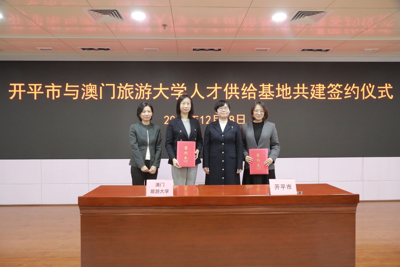 为深化澳门与粤港澳大湾区内地城市在旅游教育与产业发展的联动,澳门旅游大学与江门开平市于12月18日在开平市人民政府举行“开平市与澳门旅游大学人才供给基地共建签约仪式”。此次合作植根于两地共同的文化荣誉与发展使命,旨在透过产教深度融合,探索世界文化遗产的可持续发展与活化路径,为粤港澳大湾区培育文化旅游专才。