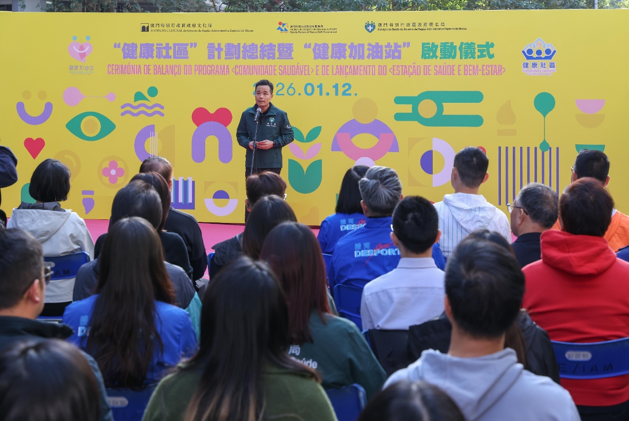 在仪式上,罗奕龙局长致辞时表示,特区政府贯彻国家健康优先发展战略,以居民健康为中心,推动资源下沉。卫生局于去年积极落实《健康澳门蓝图》各项工作,提升居民整体健康水平;文化局开展艺文、阅读系列活动;体育局开展大众健康体育活动等,合力全方位滋养居民身心健康。在行政长官领导、中联办支持及社会文化司统筹协调下,“健康社区”计划由去年3月启动至今,依托跨部门协作,并与社团机构联动,透过咨询站、快闪站等开展了近200场活动,约有14万人次的本澳居民参与。从而把健康促进工作有效落实到社区,获居民正面反馈。今日启动的“健康加油站”是“健康社区”计划的进一步延伸,由文化局、体育局、卫生局联合开展,是首个整合“文化滋养、科学运动、健康资讯”等三大元素于同一社区场景。首阶段将开设8个站点,未来扩展至12个站点,在社区恒常化为居民提供便捷的健康促进服务,实现健康资源“随手可得、随心即享”,携手实现“活力澳门、文化澳门、幸福澳门”施政愿景。