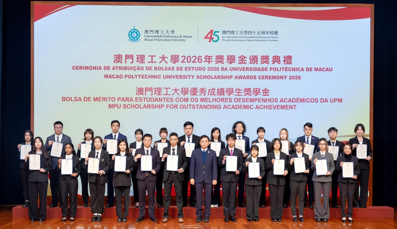 在喜迎澳门理工大学45周年校庆之际,“2026年奖学金颁奖典礼”隆重举行,向六百名优秀的澳理大学生颁发奖学金,嘉许学生在学术研究与专业范畴取得的杰出成就,并藉此勉励全体获奖学生,传承弘扬爱国爱澳核心价值,为国家及澳门的发展贡献力量。