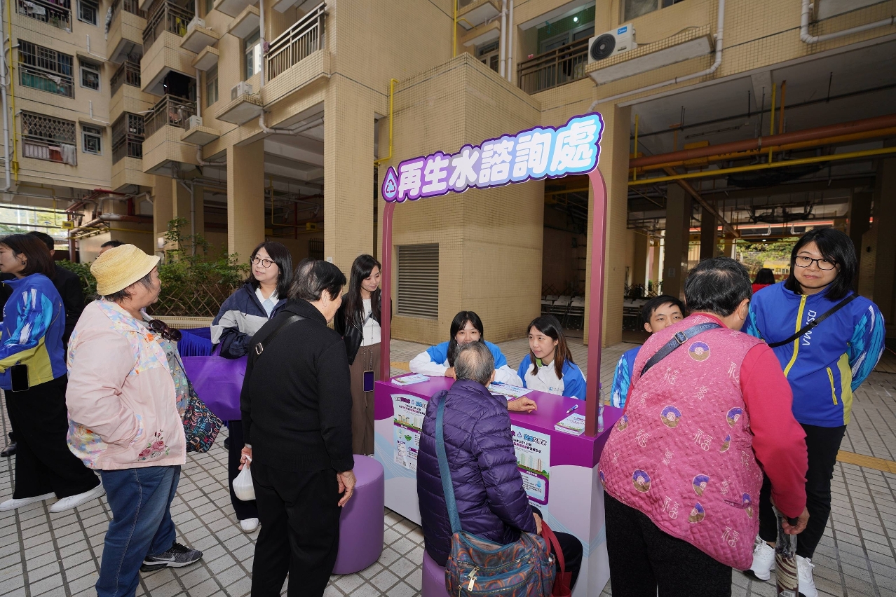为使再生水顺利入户和正确应用,海事及水务局深入社区,联同澳门自来水股份有限公司、民众建澳联盟、恩晖长者综合服务中心、路环石排湾居民互助会、街总石排湾家庭及社区综合服务中心、澳门工会联合总会、澳门中华学生联合总会、澳门妇女联合总会,于石排湾乐群楼第三座休憩区及澳门大学E4刘少荣楼设置“再生水资讯站”,为市民提供再生水资讯,展期由即日起至4月29日,更有专员在特定时间现场为市民介绍再生水和解答查询,积极帮助市民认识再生水。