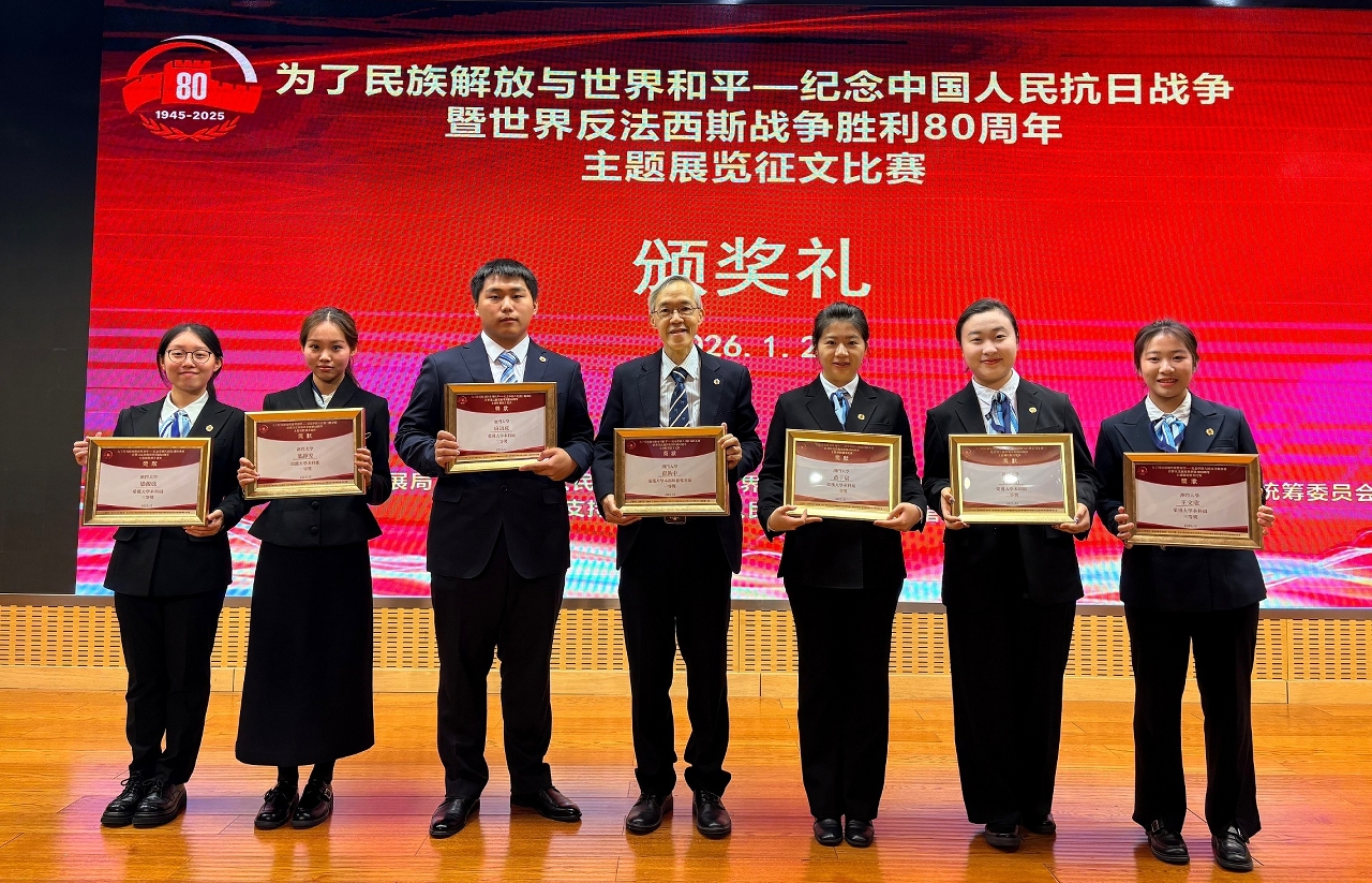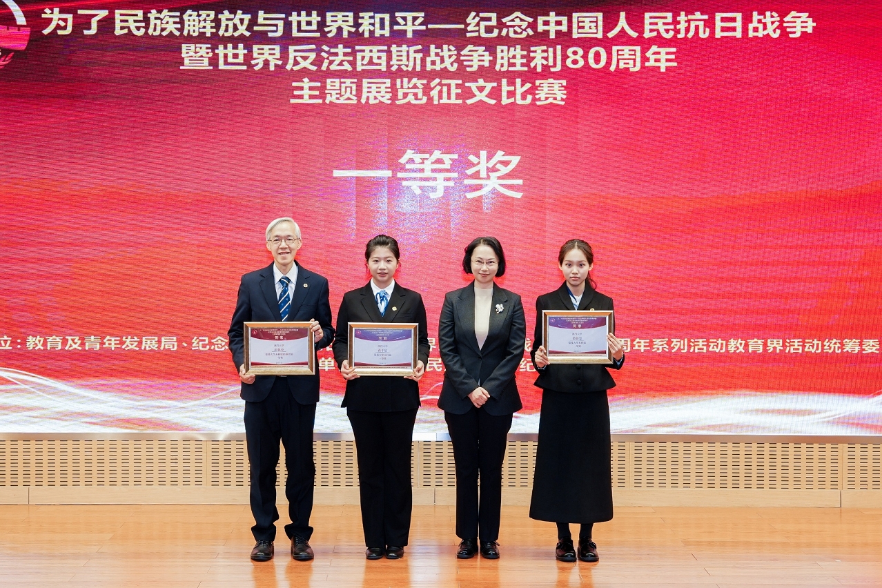 是次比赛由澳门特别行政区政府教育及青年发展局以及纪念中国人民抗日战争暨世界反法西斯战争胜利80周年系列活动教育界活动筹备委员会主办。澳大共有18名学生获得多项殊荣,包括两项一等奖、一项二等奖、三项三等奖、五项优异奖及七项入围奖;指导老师、澳大学生事务长彭执中亦荣获指导老师一、二、三等奖。澳大师生赴北京参与比赛颁奖典礼,师生携手登台,共获殊荣,成果丰硕。