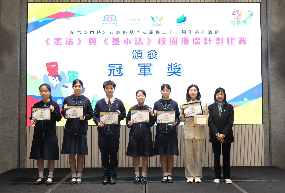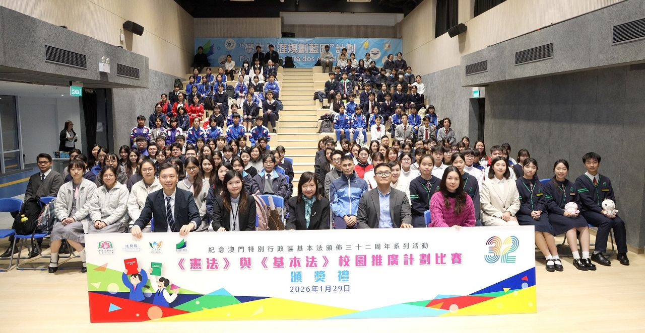颁奖礼于2026年1月29日顺利举行。澳门基本法推广协会副理事长兼秘书长何少金、法务局法律推广及公共关系厅代厅长黄嘉慧、市政署文康及公民教育厅代厅长阮大伟、教青局中学教育处处长梁怡安、其他主管人员、学校代表,以及获奖师生出席活动。