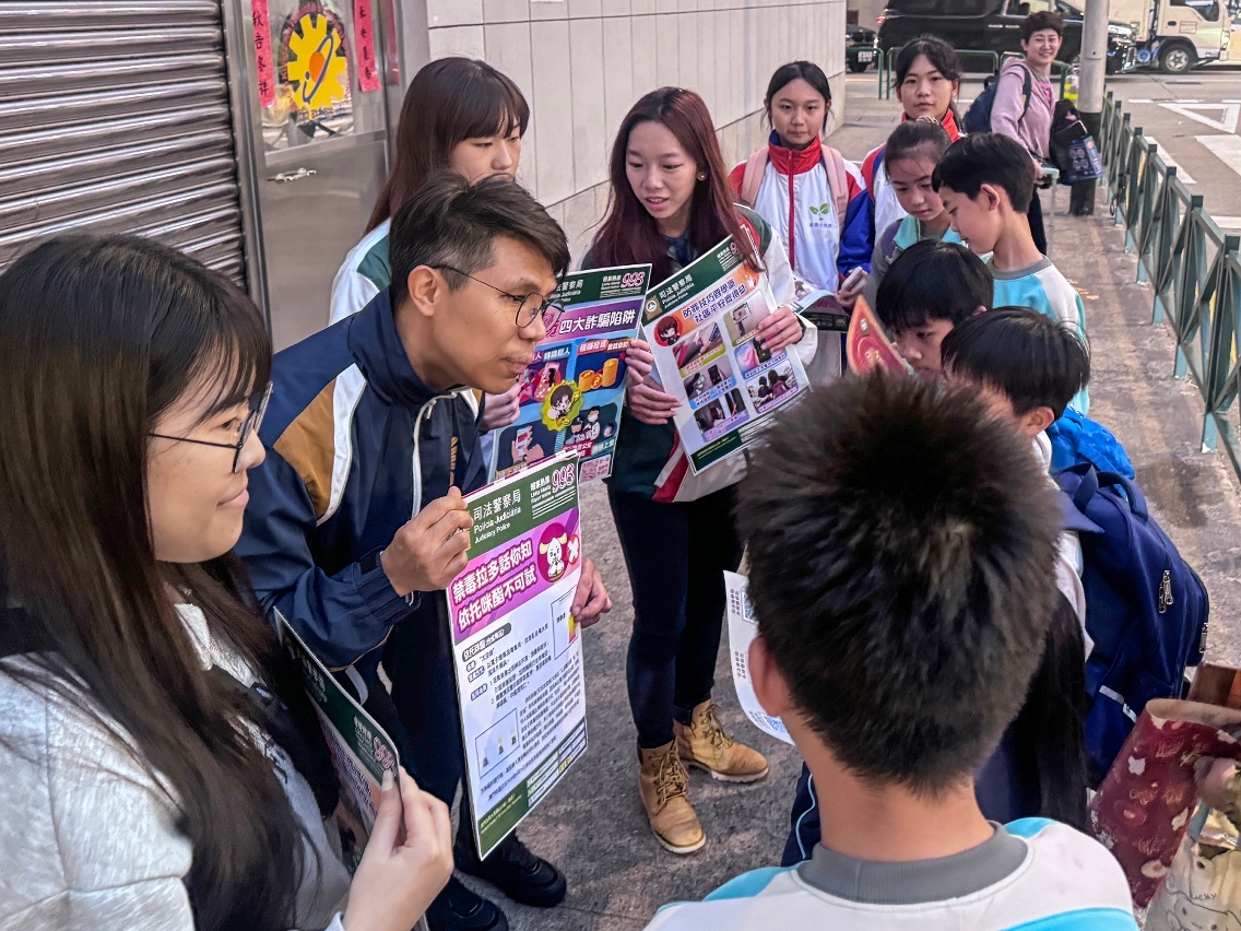 农历新年长假期临近,青少年外游或参与节庆活动的时间显着增加,为加强青少年防罪守法意识,预防他们误堕法网或受到不法侵害,司法警察局展开“新春假期前夕警校联合防罪巡查”工作,联合已加入“学校安全联络网”的多所学校代表,并组织“社区安全青年领袖计划”及“灭罪小先锋种子计划”学员,前往本澳各区校园周边进行巡查及宣传防罪讯息。