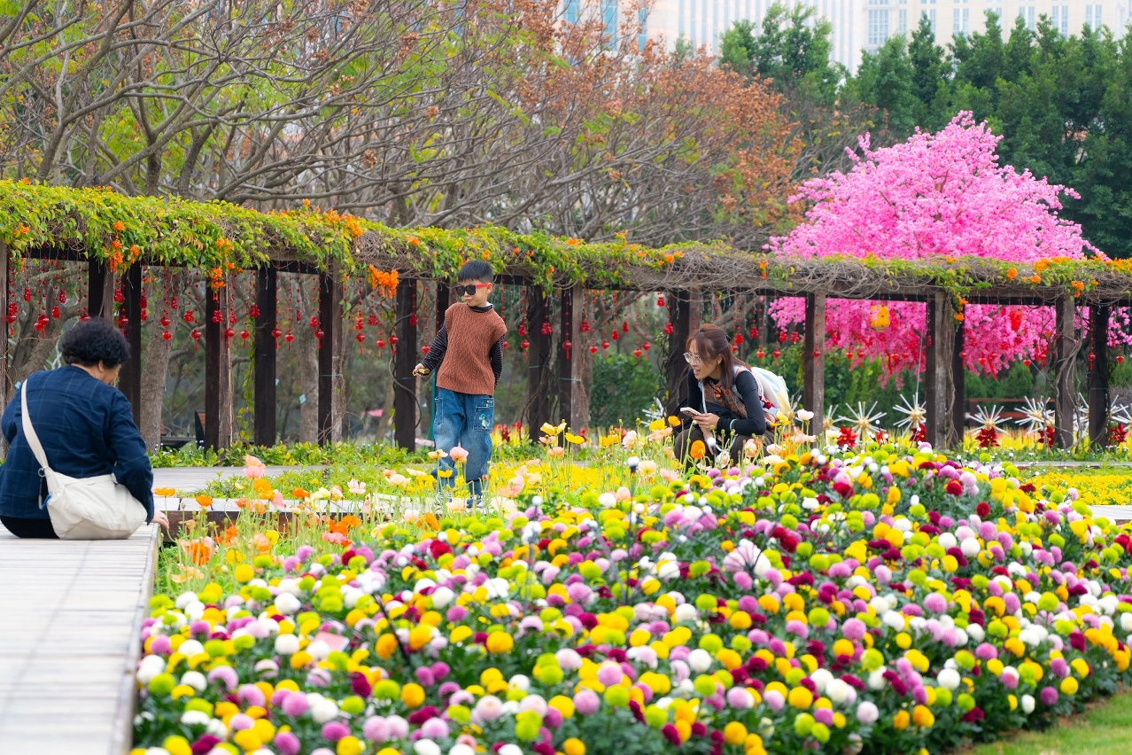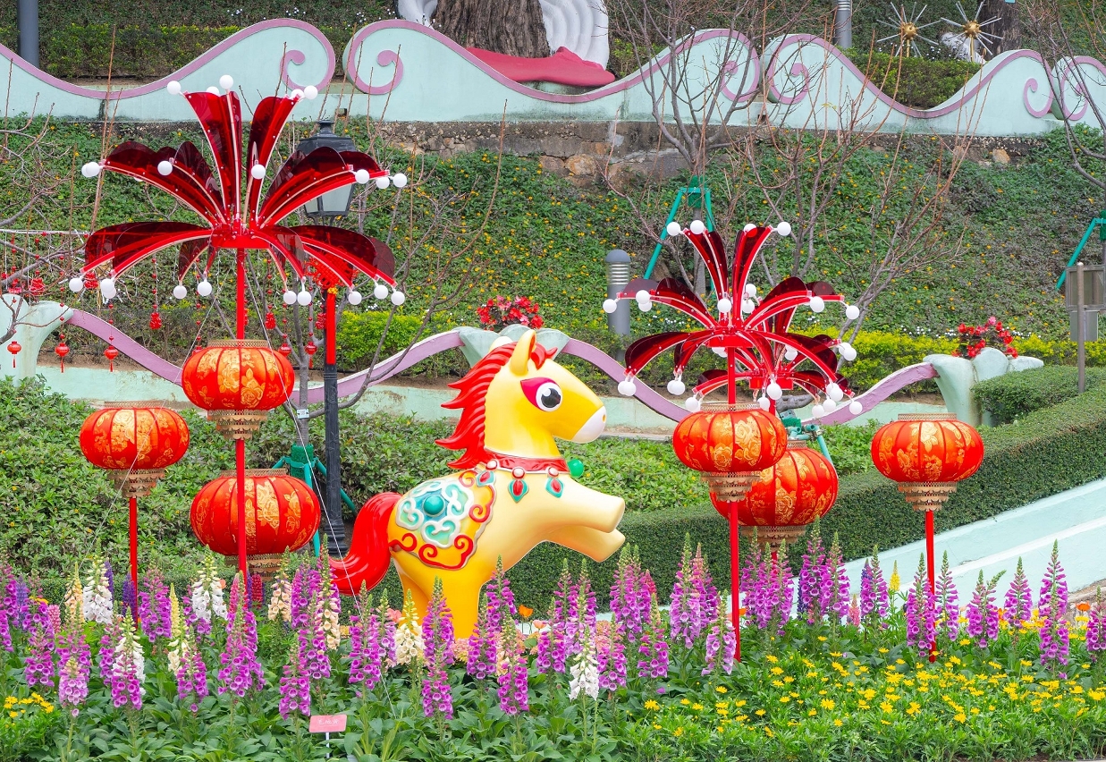 今年是丙午马年,花展将以马年装饰为主题,搭配各色大丽花及其他带有吉祥如意的贺年花卉作展示,组成层次丰富的花海,营造繁花缤纷的视觉效果。同时,展场共设有五个打卡点,包括“福马报春”、“飞檐灯巷”、“八景灯集”、“竹灯纳福”及“剪纸马市”,市民可融入精致的花境拍照打卡留念,让市民及游客感受浓厚的新春节日气氛,共度佳节。
