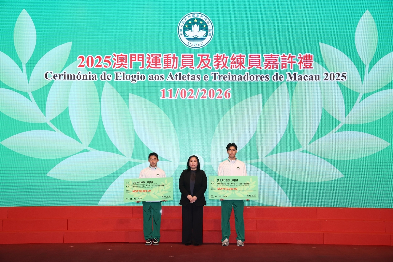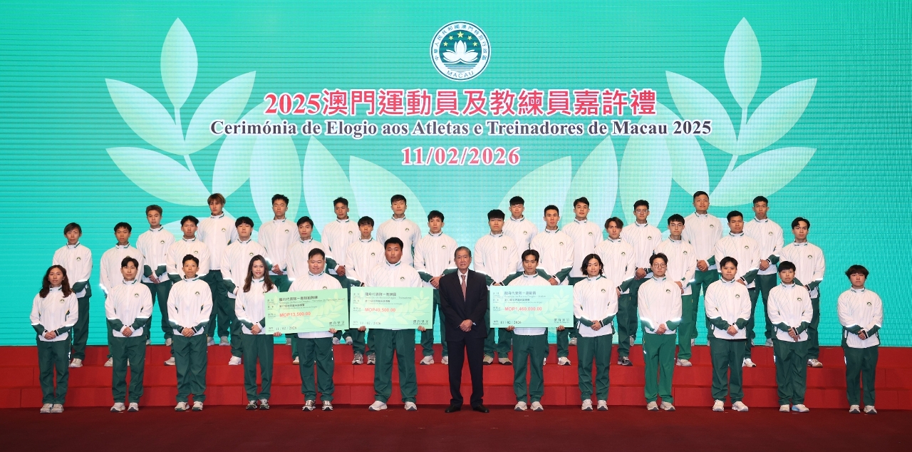 为表彰在2025年度参加体育比赛中获得优秀成绩的本澳运动员、教练员及技术辅助人员,以及为鼓励澳门体育代表团在今年各项大型体育赛事中创造佳绩,「2025澳门运动员及教练员嘉许礼暨2026体育代表团誓师仪式」昨(11)日晚上七时半举行,社会文化司司长柯岚等出席仪式,勉励并祝贺一众运动健儿。