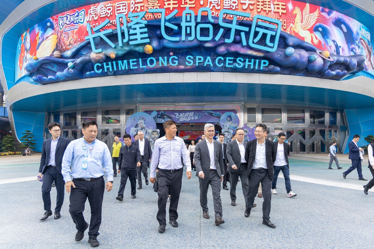 戴建业随后转往横琴长隆国际海洋度假区,登上横琴湾酒店21楼俯瞰度假区全貌,了解度假区整体规划建设;又走进长隆飞船乐园项目,实地了解度假区在新春期间的客流量及经营情况,并与长隆集团代表围绕度假区未来发展规划等方面交流意见。