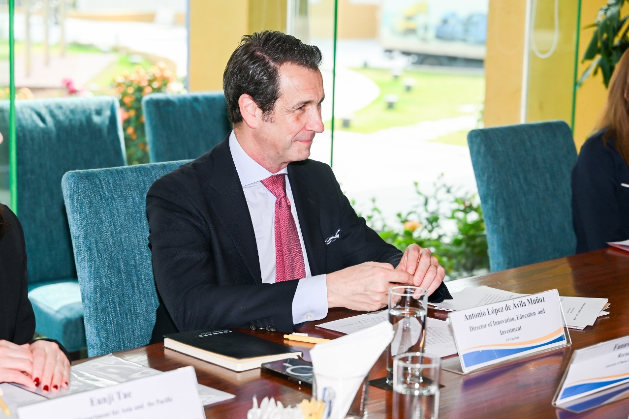 2月25日,联合国世界旅游组织创新、教育和投资部主任安东尼奥‧洛佩斯德阿维拉(Antonio López de Ávila)一行到访澳门旅游大学,由校长黄竹君、副校长吕剑英,以及相关教学单位代表热情接待。双方探讨旅游教育创新、国际人才培养等议题,并就进一步把合作课程延伸至横琴粤澳深度合作区展开深入交流。