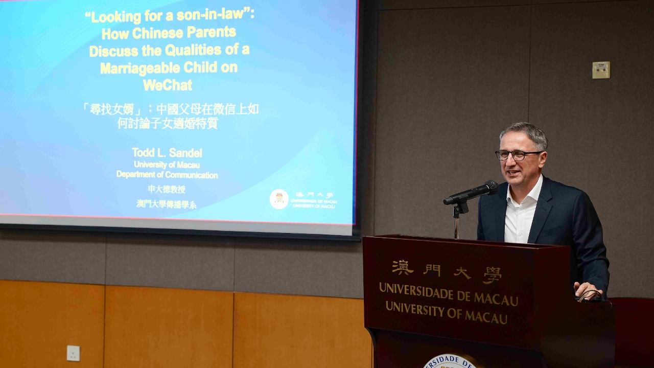澳门大学今(6)日举行“澳大学人研究讲坛”第31讲,由澳大社会科学学院传播系教授申大德(Todd Sandel)以“寻找女婿:中国父母在微信上如何讨论子女的适婚特质”为题发表演说。讲座吸引一众师生及公众参与,现场讨论气氛热烈。