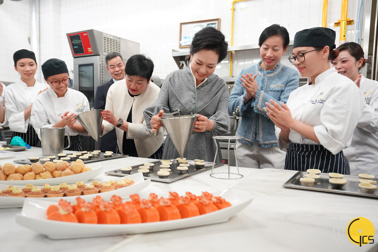 國家主席習近平夫人彭麗媛在旅遊學院親身體驗製作小食
