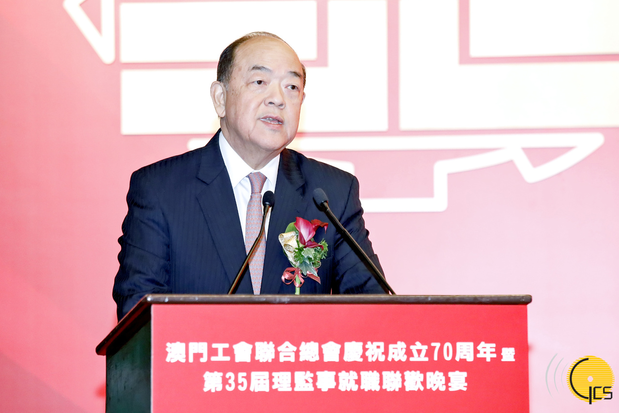 行政長官賀一誠在澳門工會聯合總會慶祝成立70周年暨第35屆理監事就職聯歡晚宴上致辭