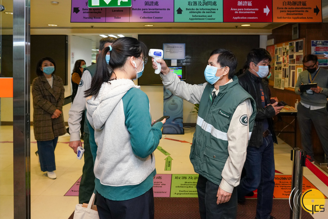 公共部門今日向市民提供基本服務,在抗疫期間,進入部門的市民需接受體温測量,並按情況填寫“個人健康聲明”。