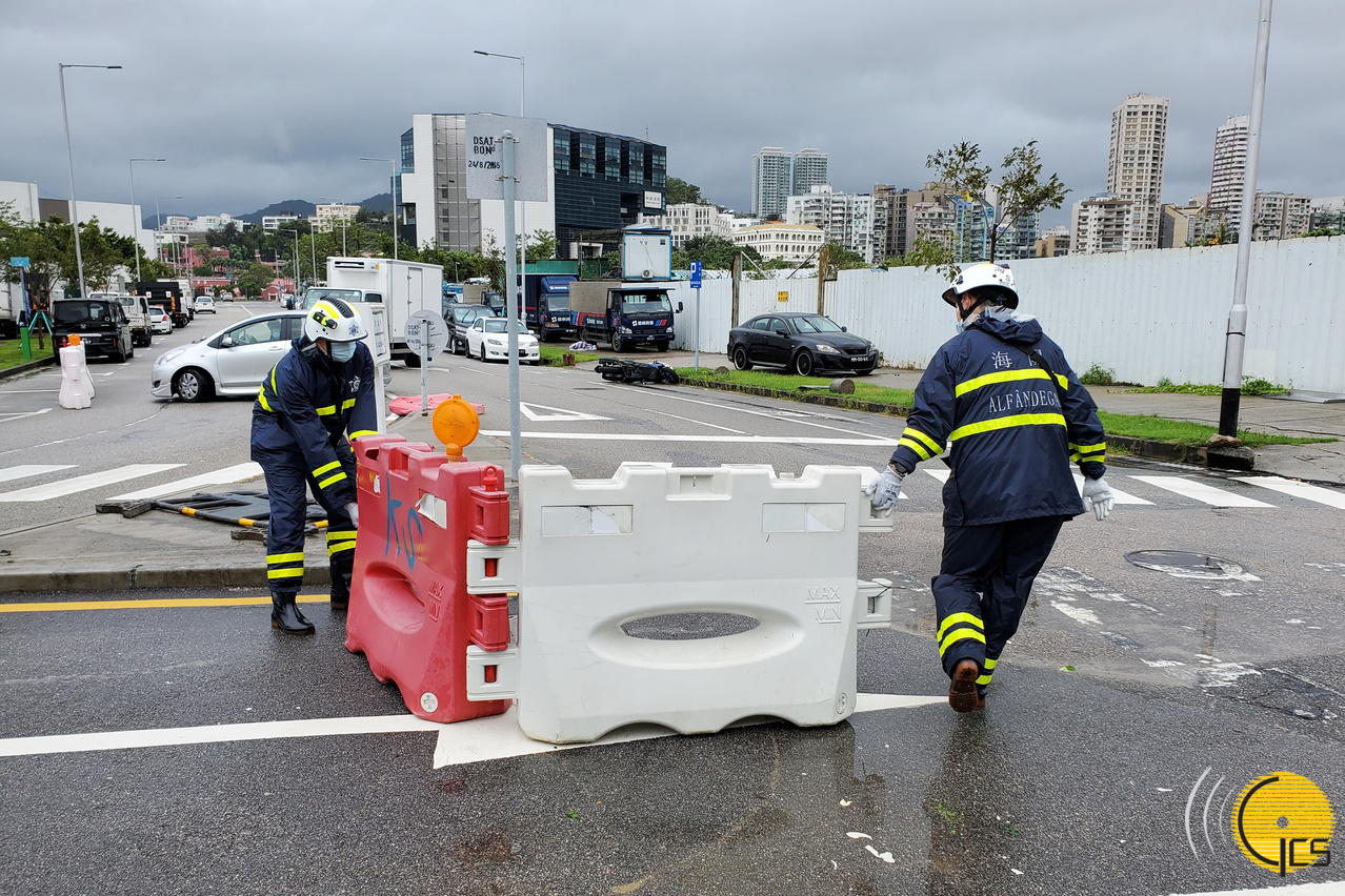 轉掛八號風球後,消防局隨即到筷子基、青洲一帶進行清障,以儘快恢復道路。
