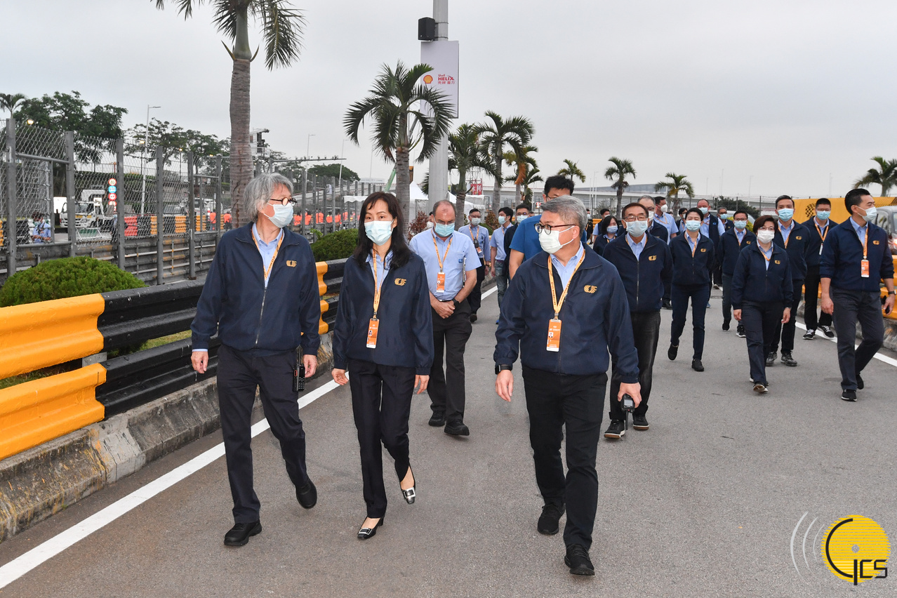 社會文化司司司長、澳門格蘭披治大賽車組織委員會主席歐陽瑜在練習日巡視東望洋跑道。