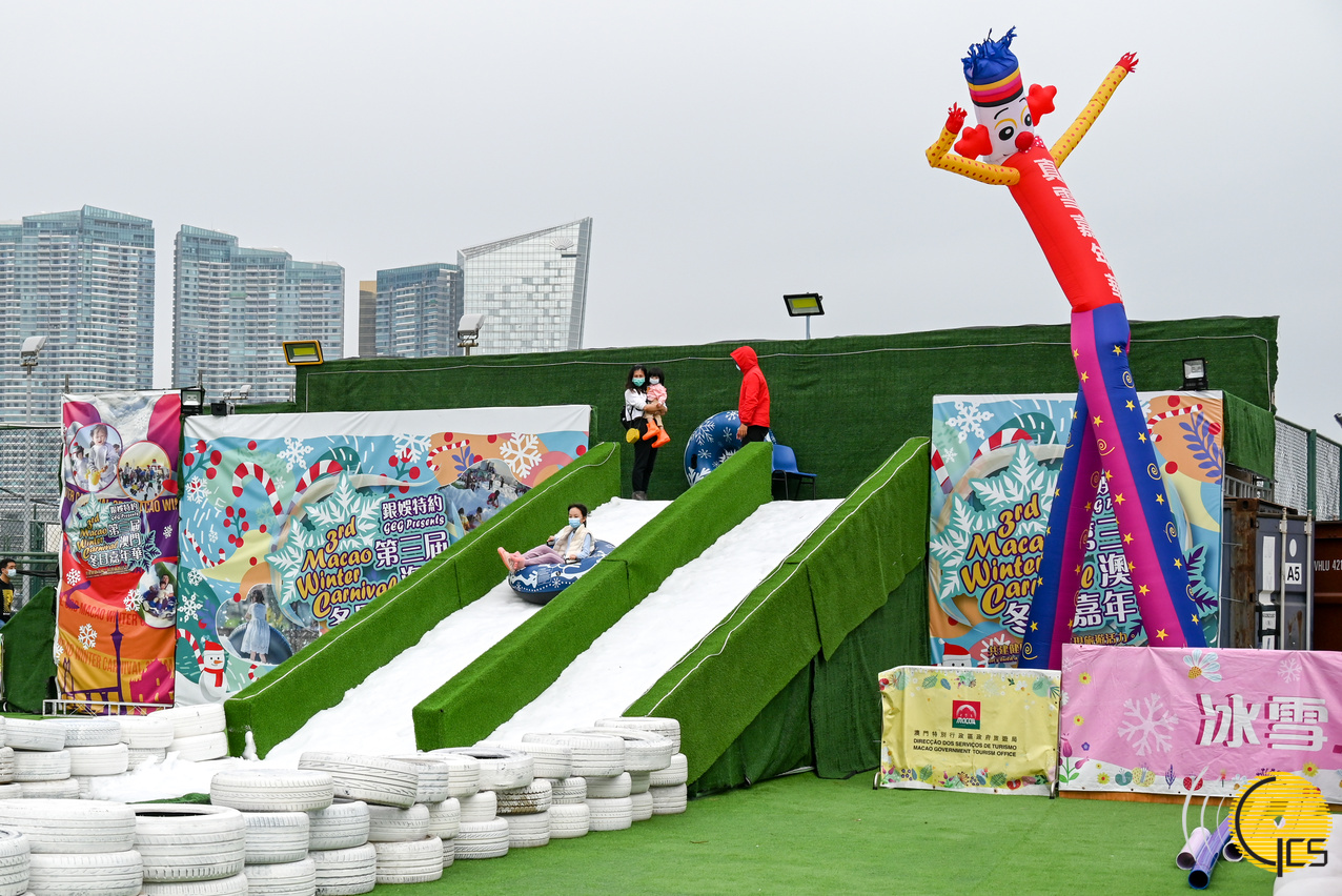 嘉年華是澳門戶外最大真雪樂園,場內有冬日滑雪區、滑雪梯、攤位遊戲區、兒童天地區等。