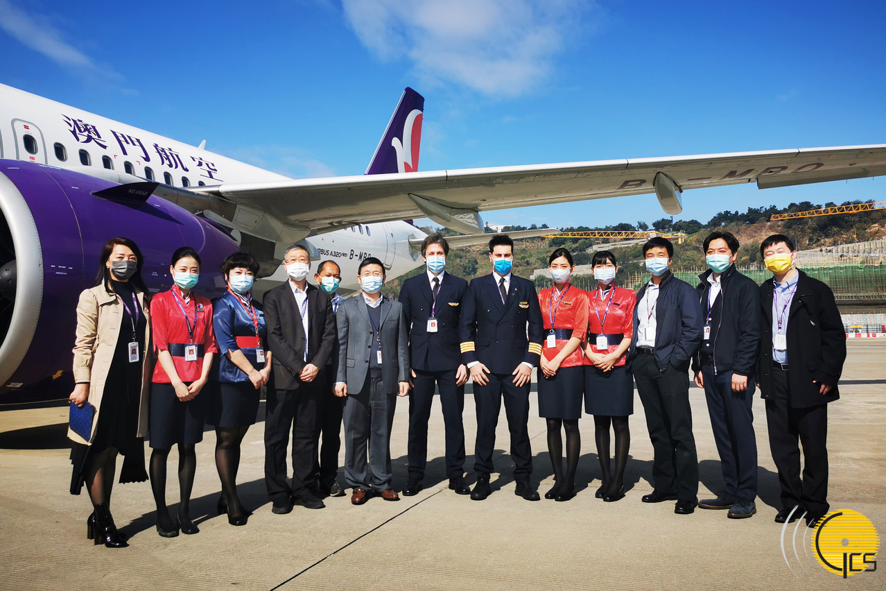 澳門航空航班的機組人員今早在澳門國際機場出發,接回從日本東京返澳的澳門居民。(照片由澳門航空公司提供)