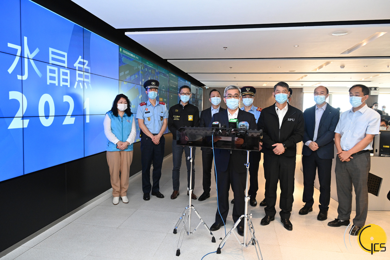 “水晶魚2021”颱風演習-民防行動中心啟動全面運作模式,並就執行應對颱風進行工作部署。