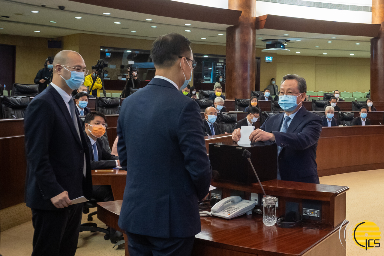 立法會舉行全體會議,選舉行政長官選舉委員會委員中立法會議員的代表。