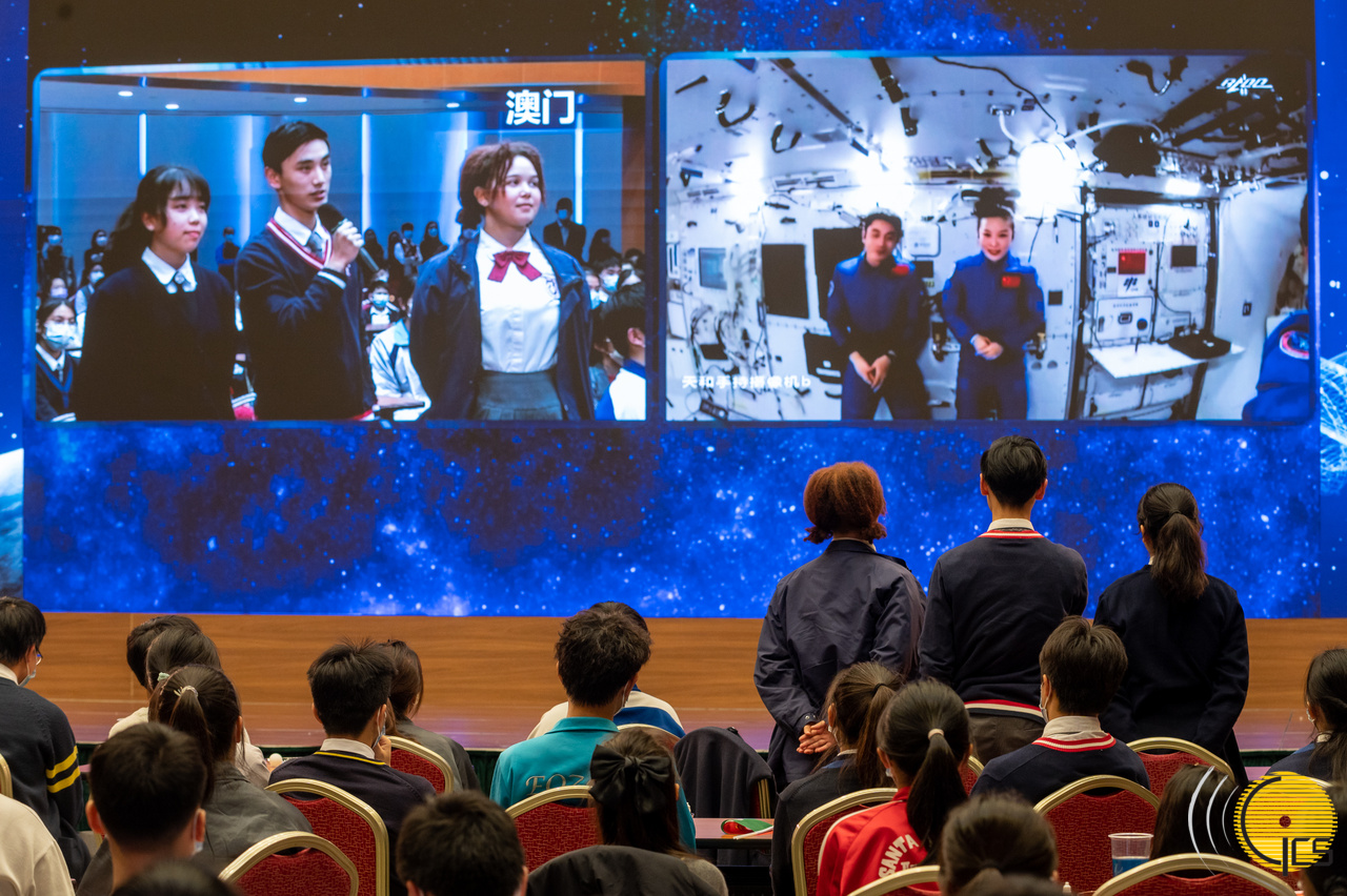 神舟十三號的3名航天員在中國空間站向包括澳門在內的青少年進行太空授課。