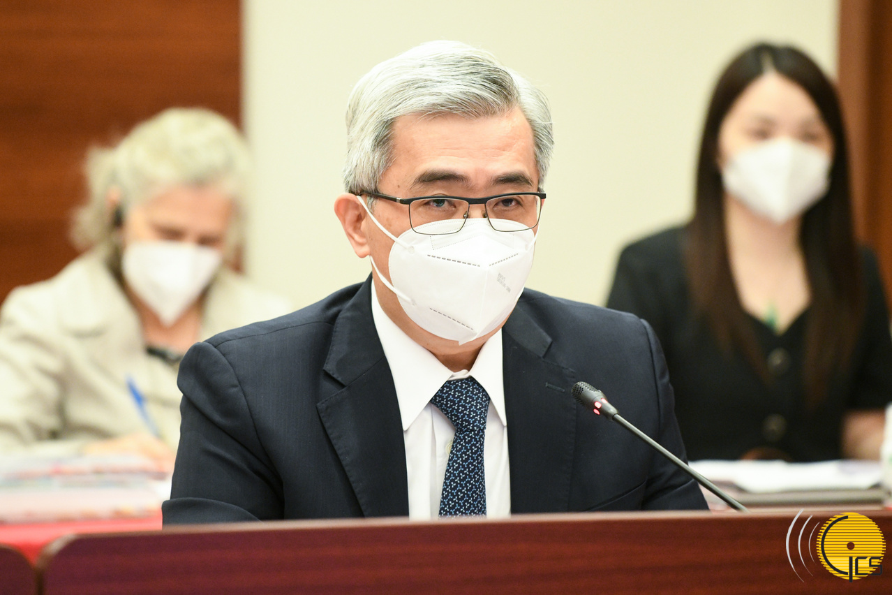 社會文化司司長歐陽瑜列席立法會全體會議(視像會議),議程為引介、一般性討論及表決《修改第2/2004號法律〈傳染病防治法〉附件的傳染病表》法案。