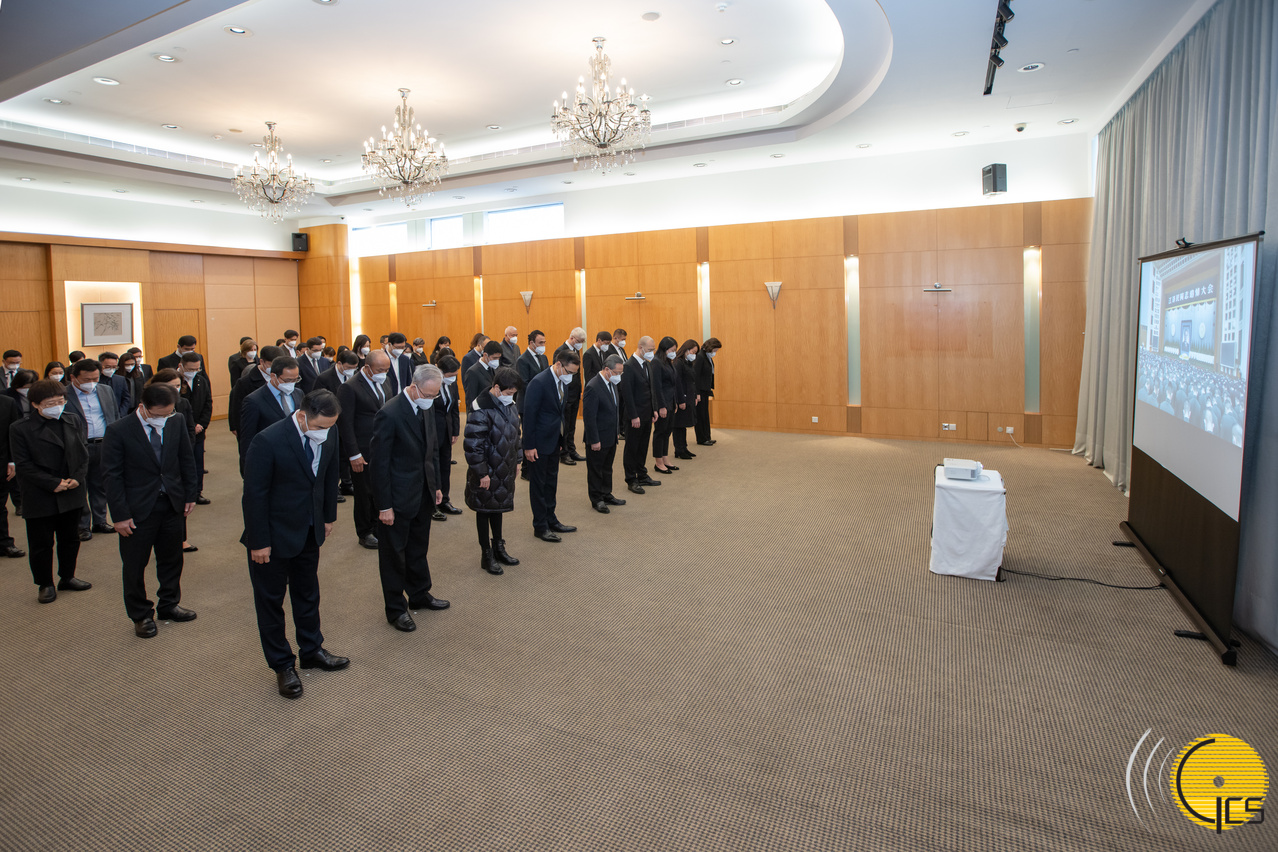 立法會主席高開賢帶領立法議員、立法會顧問團及部門主管收看前國家主席江澤民追悼大會現場直播,在追悼大會默哀時,全體人員默哀三分鐘。