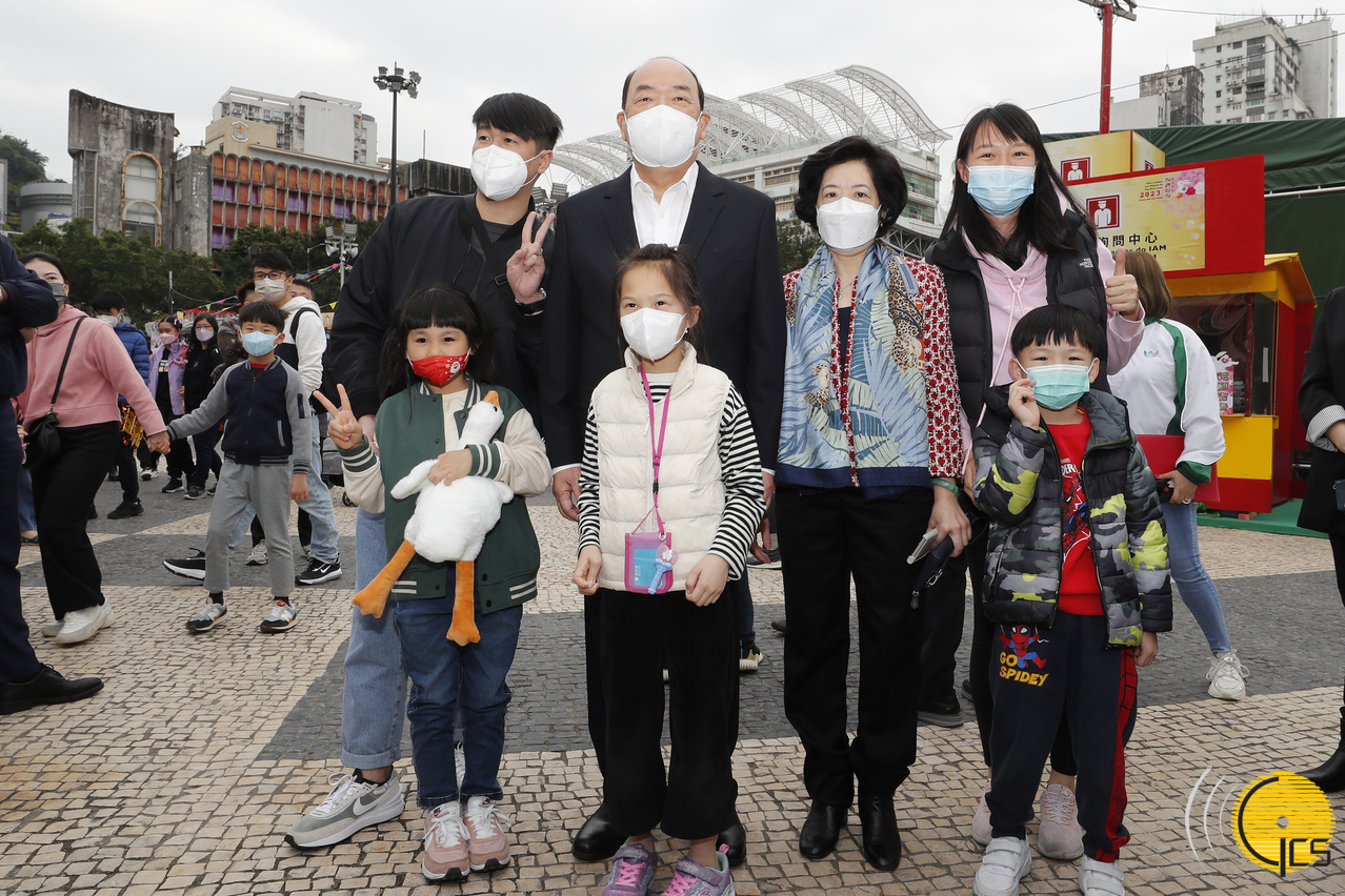 行政長官賀一誠伉儷參觀年宵市場期間與小朋友及其家長合影