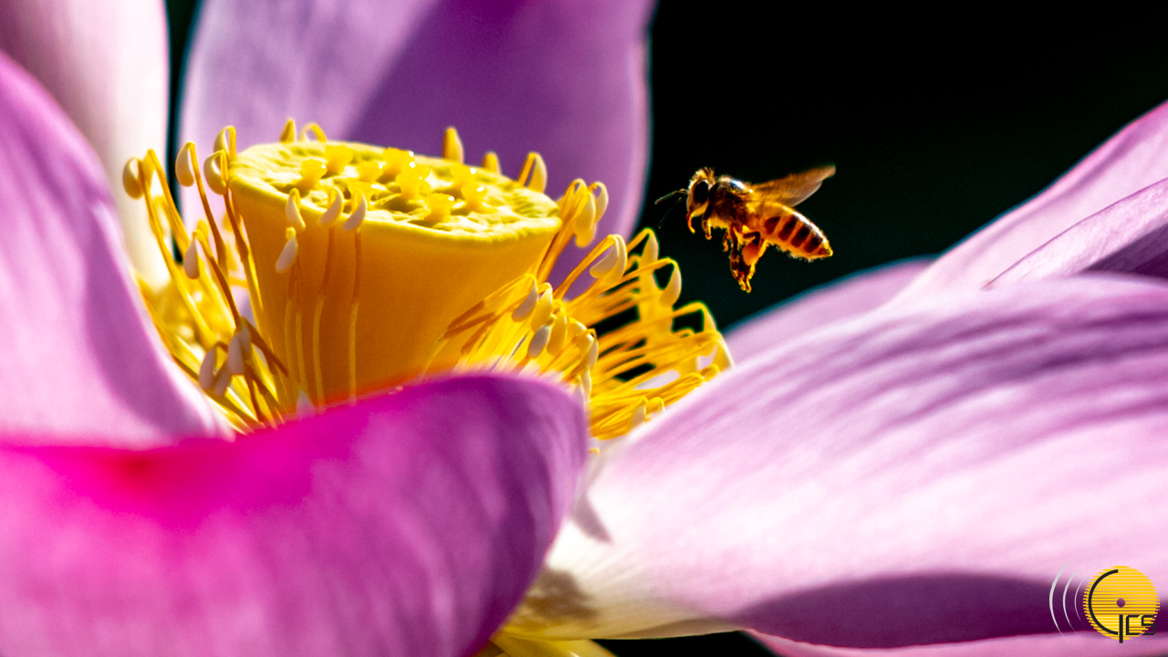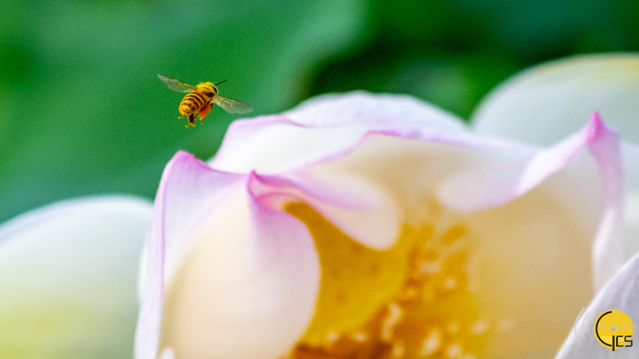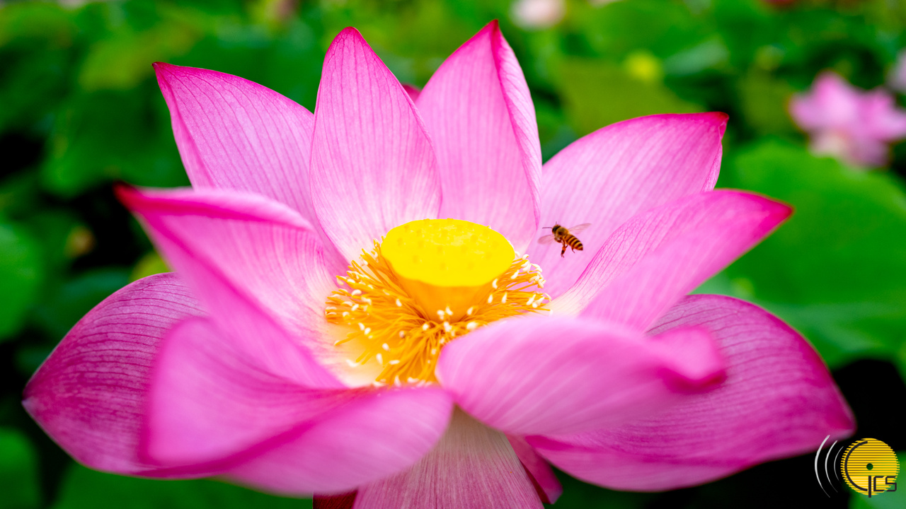 陣陣清幽荷香,吸引蜜蜂前來尋花採蜜。