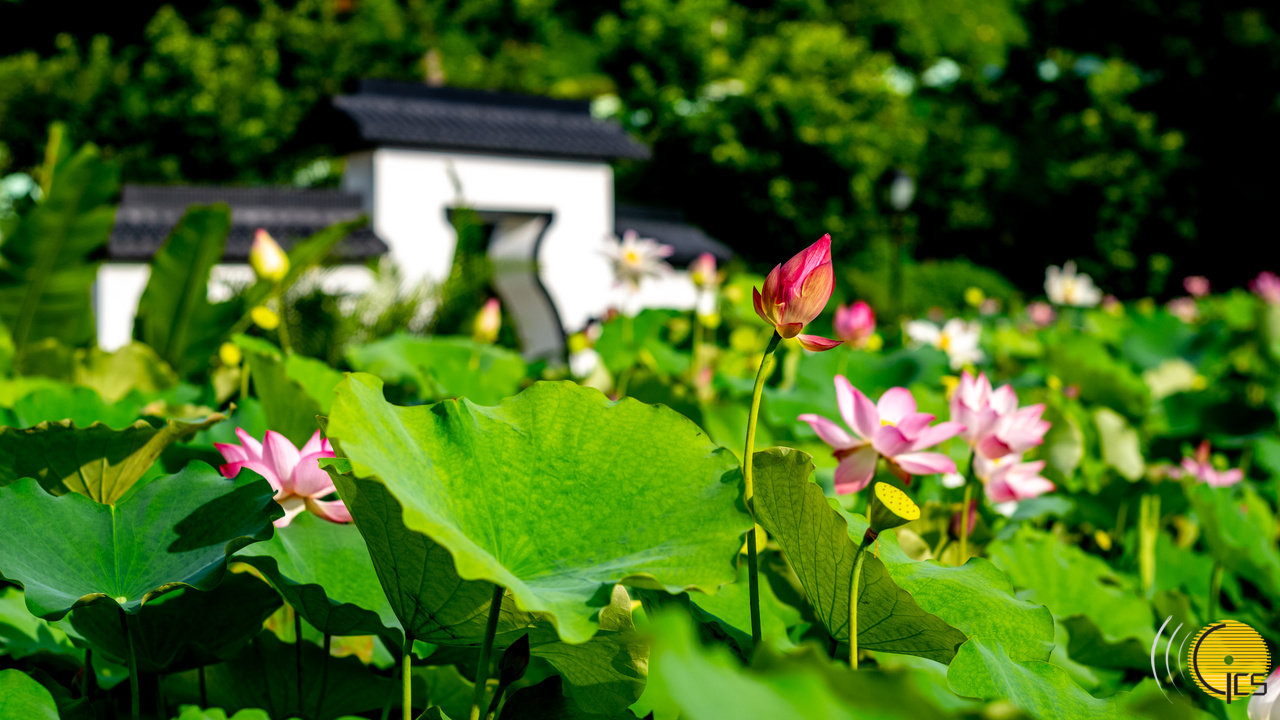 粉嫩的荷花在碧綠的荷葉間綻放,令人賞心悅目。
