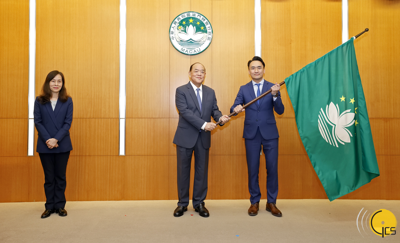 行政長官賀一誠向“中華人民共和國第一屆學生(青年)運動會”澳門體育代表團授予澳門特區區旗。