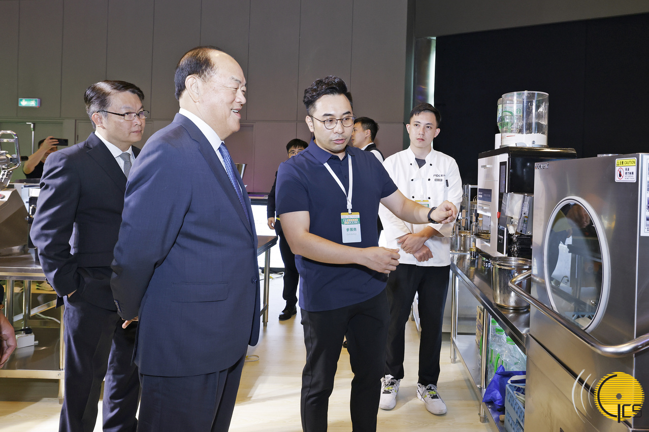 行政長官賀一誠參觀“餐飲業智能升級方案展示會”,與展示商互動交流,了解新一代智能化設備的研發應用及相關技術。