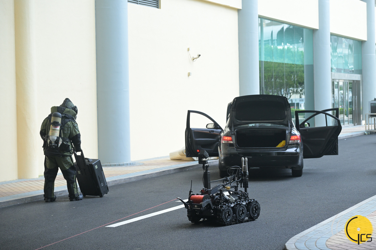 2024年大型聯合反恐演練“盤龍” - 治安警察局人員在恐怖分子車輛發現炸彈及進行排爆。
