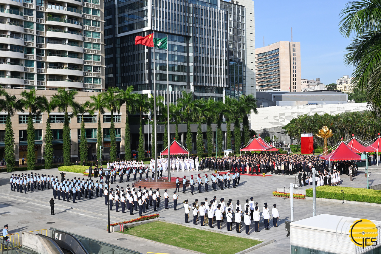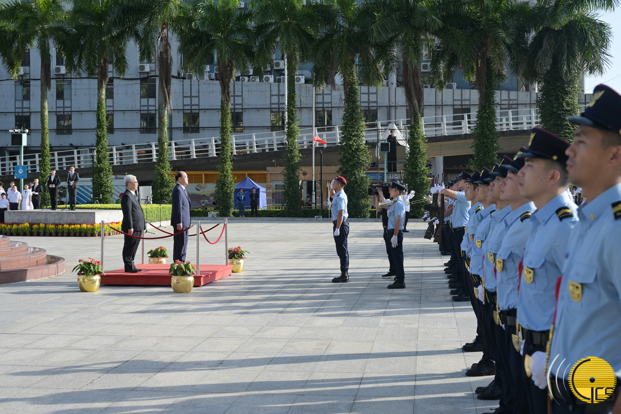 行政長官賀一誠、中央駐澳官員、解放軍駐澳部隊軍官、特區立法和司法機關負責人、政府主要官員及各界人士出席慶祝中華人民共和國成立75周年升旗儀式。