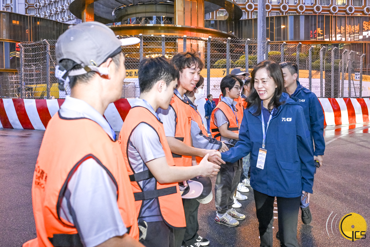 社會文化司司司長、澳門格蘭披治大賽車組織委員會主席歐陽瑜在第71屆澳門格蘭披治大賽車練習日巡視東望洋跑道。