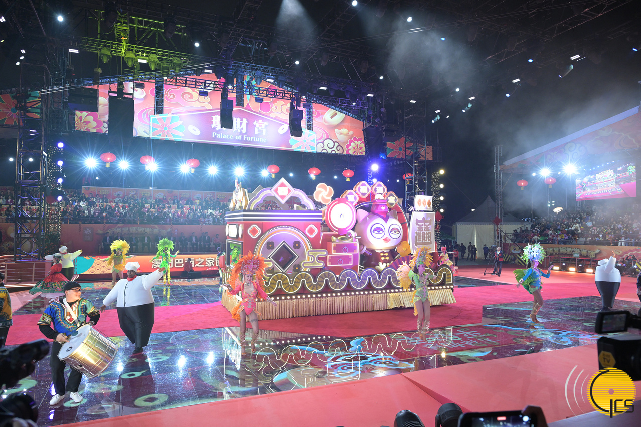 花車匯演於西灣湖廣場起步,配合精彩表演助慶,場面熱鬧歡樂。
