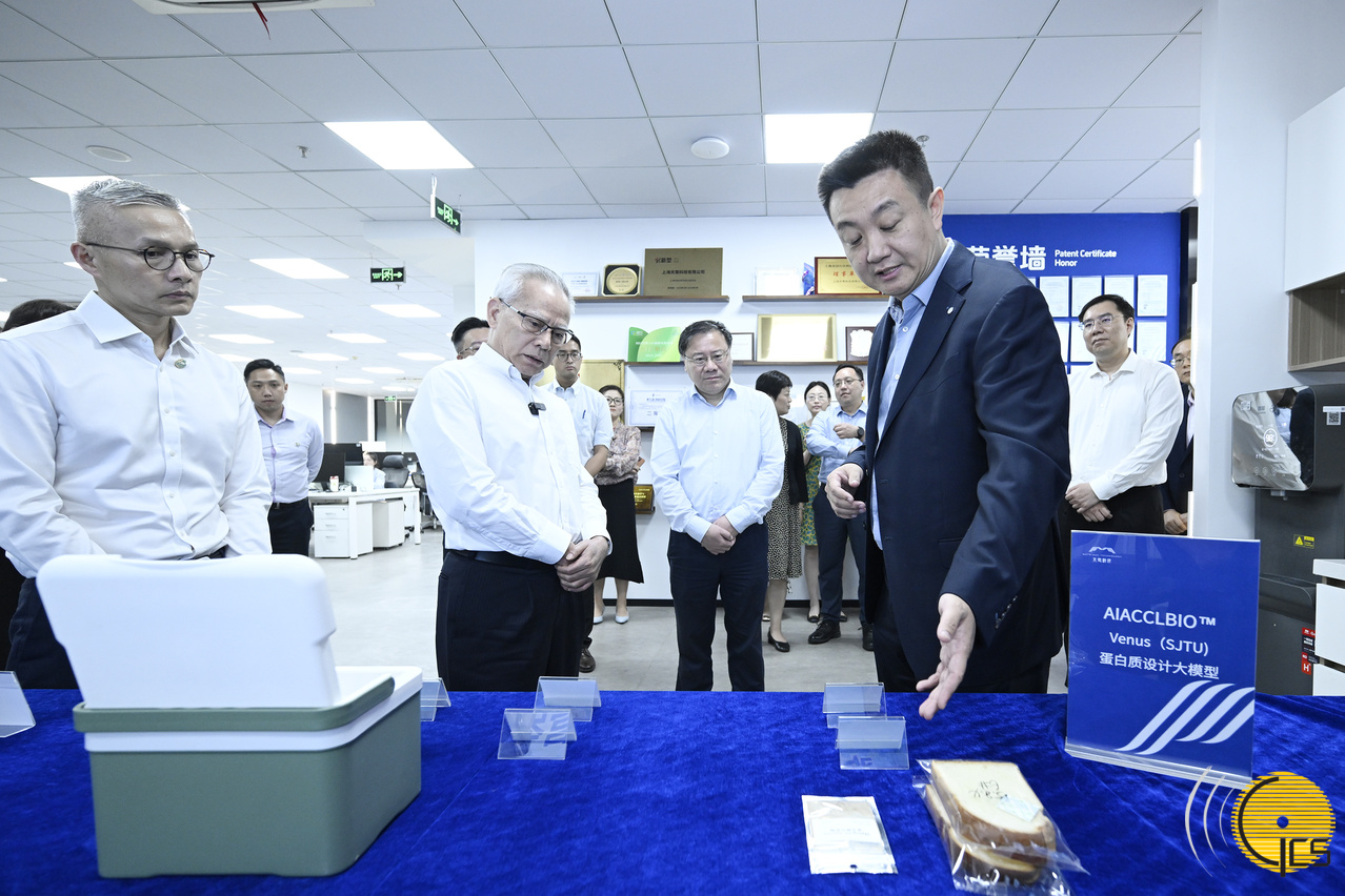 行政長官在上海考察一家專注利用人工智能進行蛋白質設計的高新科技企業。