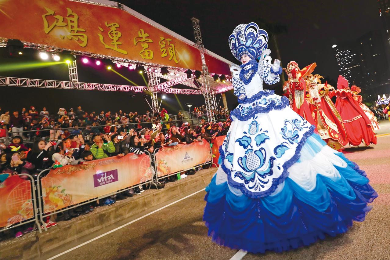 年初三及年初九晚上,大型賀歲活動「華麗盛宴旺財年狗年花車巡遊匯演」,繼續為市民及遊客送上精彩熱鬧的表演。活動故事背景以「靈犬旺財送福隊」在過去12年收集到的福氣,以及佳餚美食帶作為福禮,在花車巡遊匯演的華麗盛宴中,向全澳市民及旅客送上福氣、健康和財富。
